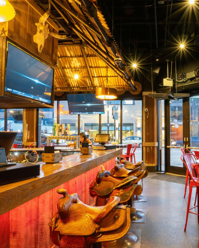 A newcomer that opened in April 2025 at 3505 N Clark St in Wrigleyville, Stolen Saddle spans three floors with a Tex-Mex theme, featuring wood-paneled walls, longhorn accents, neon lights, and real saddles as bar stools. The menu highlights smoked brisket in tacos, burritos, and nachos, plus batched margaritas in flavors like watermelon and avocado. Atmosphere-wise, it’s lively with DJ sets mixing country and pop, live music on weekends, line dancing lessons, and a rooftop overlooking Wrigley Field—perfect for game days. Special events include themed trivia and karaoke, with a capacity for over 1,100 guests. Patrons rave about the fun, immersive vibe and Tex-Mex fusion.